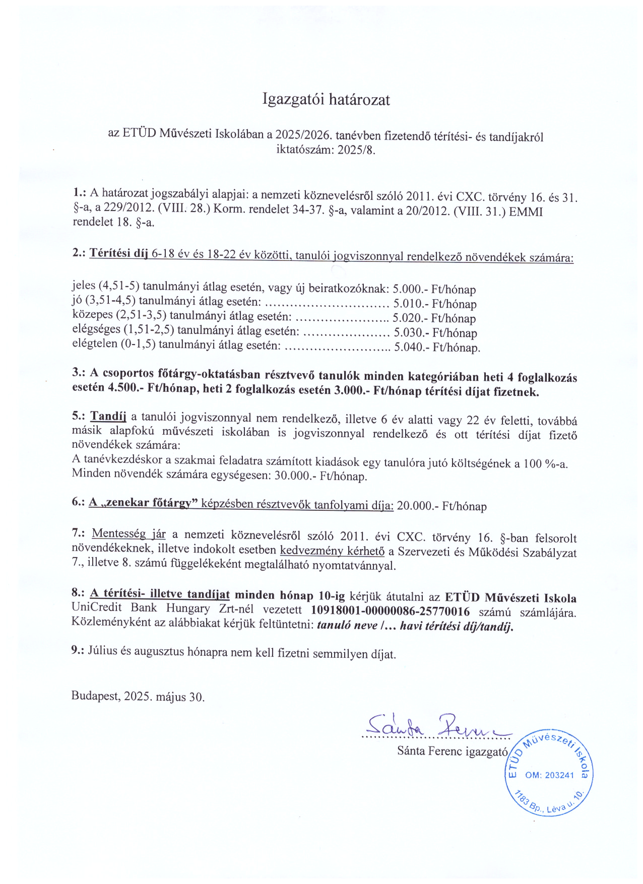 Igazgatói határozat - térítési díjak-2025-2026. tanév.bmp